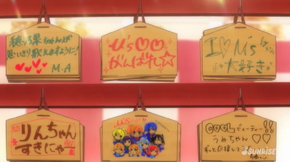 途中でたくさん映った絵馬。この前のニコ生でメンバー全員のものがあることが分かったので探してみましょう。